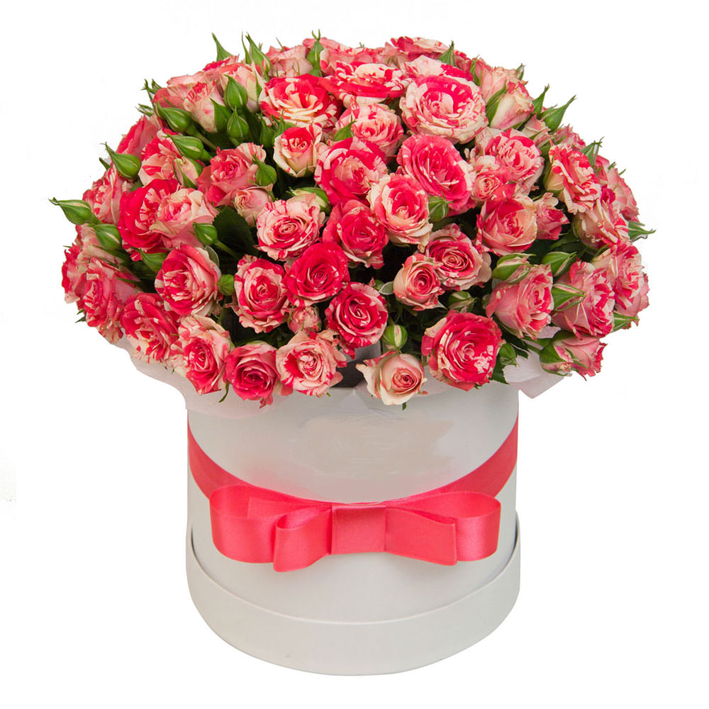 Роза Эквадор кустовая розовая. Упаковка (шляпная коробка, квадратный бокс, коробка сердце, оазис)